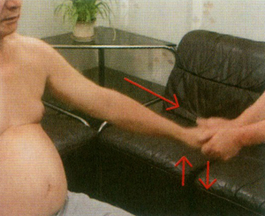 8.牵着病人的4只手指,一边牵拉,一边抖动,将肩膊抖动松弛。