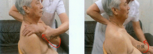 6.扶着病人手臂做内收、外展、内旋、外旋动作,重复3—5次。